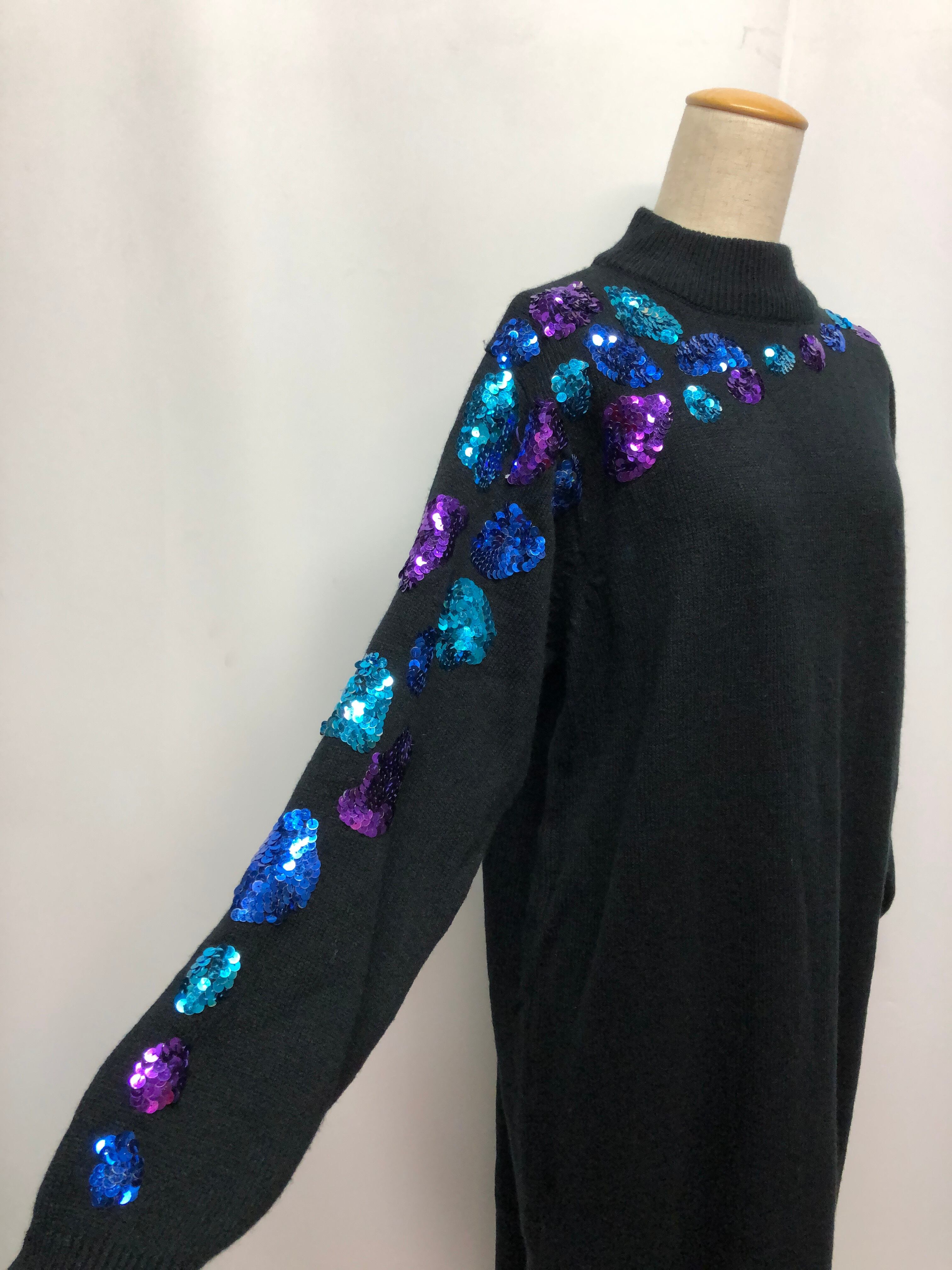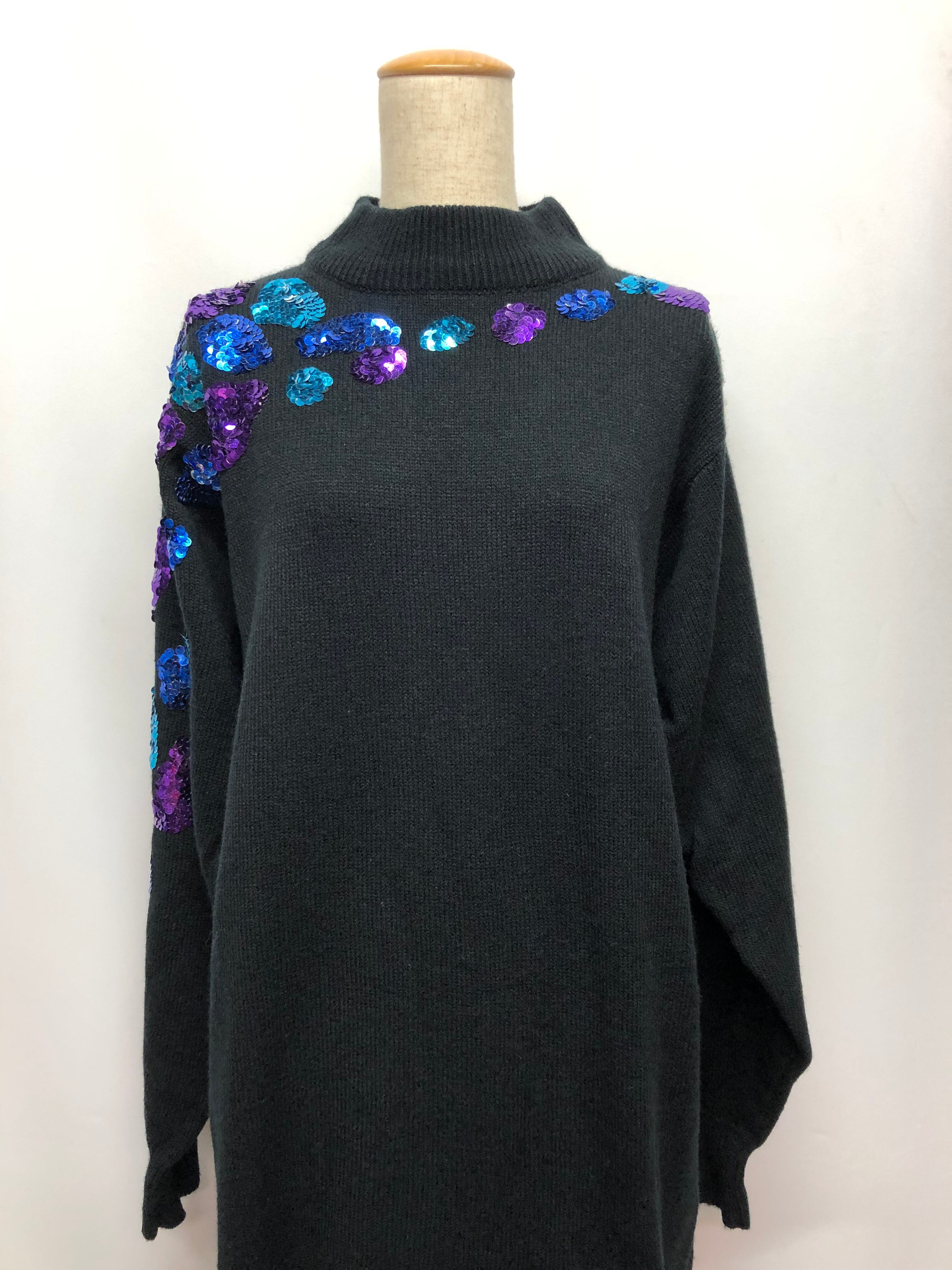 80's vintage "disco" sequins sweater dress / ヴィンテージ ニットドレス スパンコール | 福狗公司 Foo Dogs Ltd. import vintage boutique