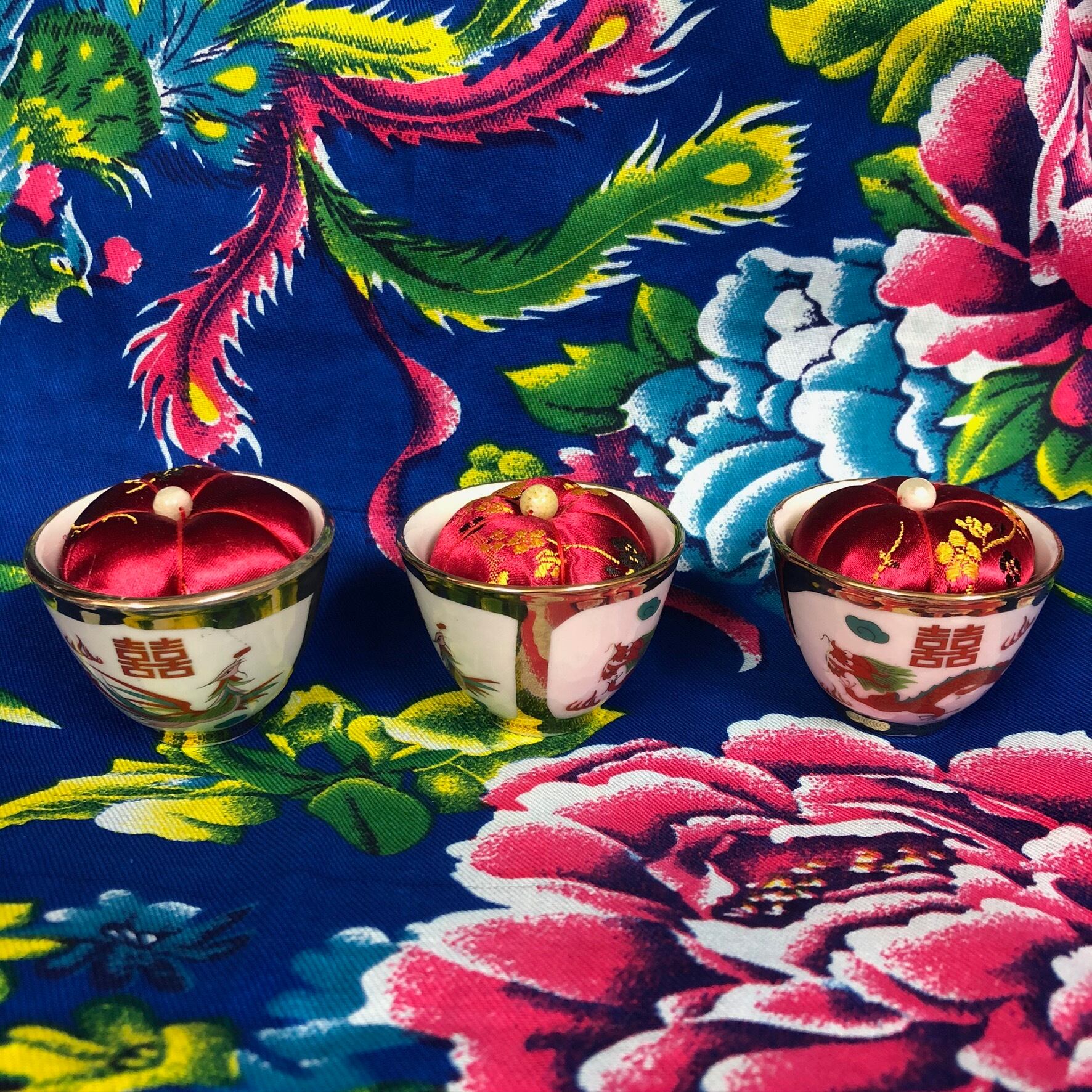当店オリジナルの景徳鎮の茶杯のピンクッション。
