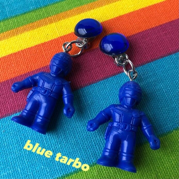 【exclusive】80's japan vintage figure doll rework clip-on-earrings "turbo ranger" / ヴィンテージイヤリング ターボレンジャー 昭和レトロ | 福狗公司 Foo Dogs Ltd. import vintage boutique