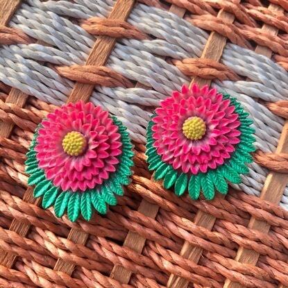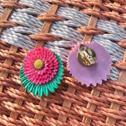 【exclusive】HongKong rétro cabochon hand made clip-on-earrings "hongkong flower” / ヴィンテージ イヤリング 香港レトロ | 福狗公司 Foo Dogs Ltd. import vintage boutique