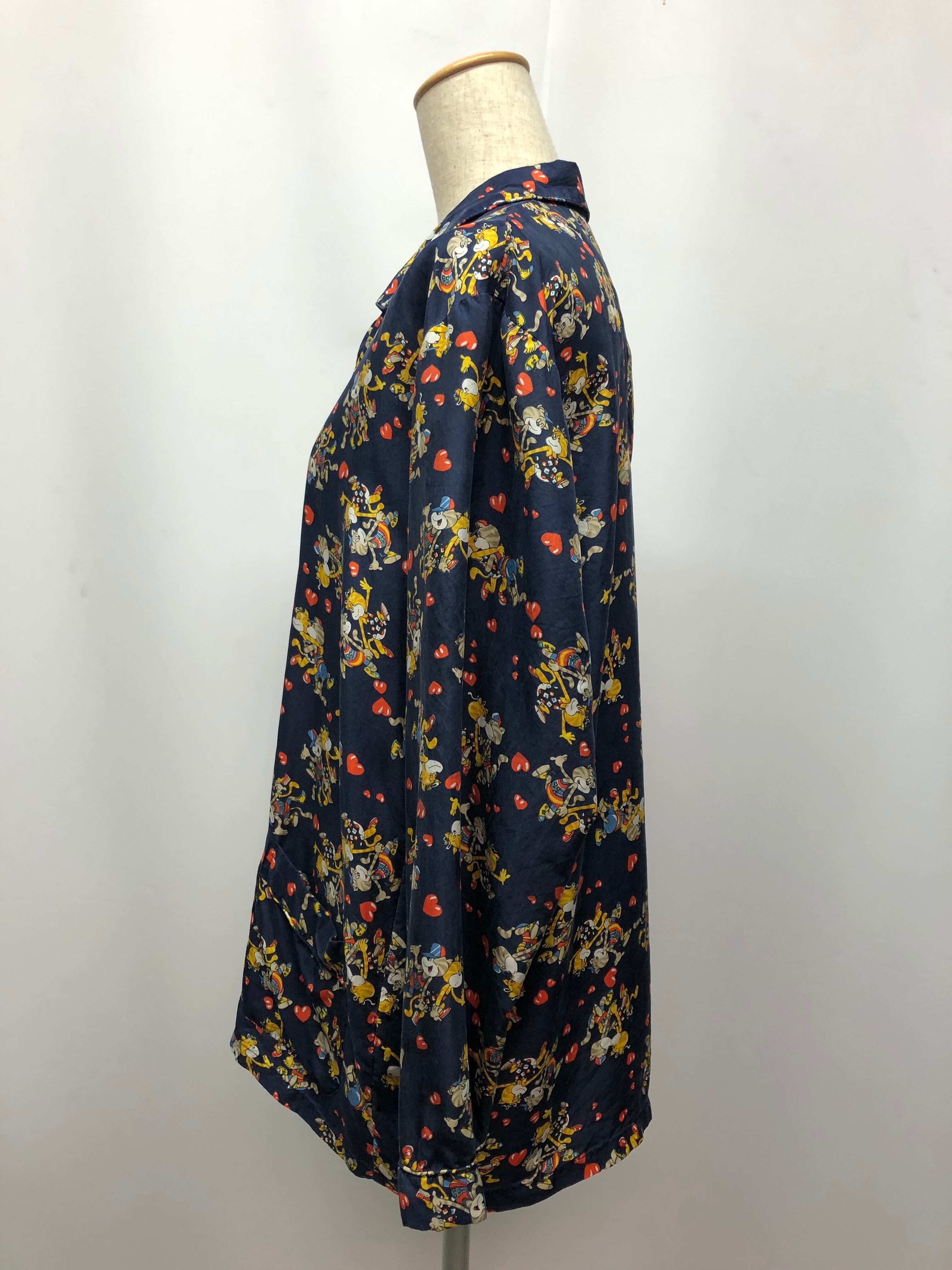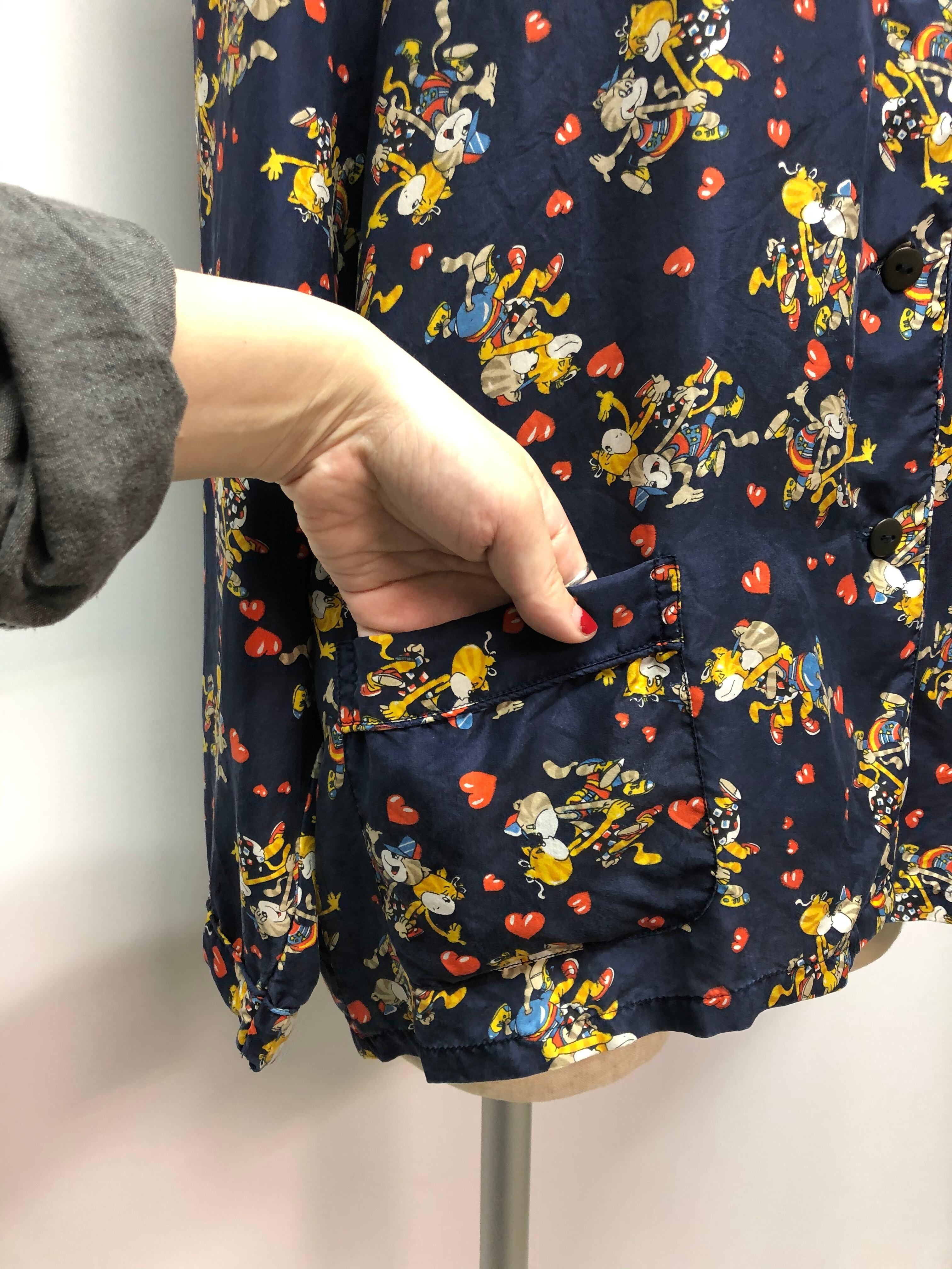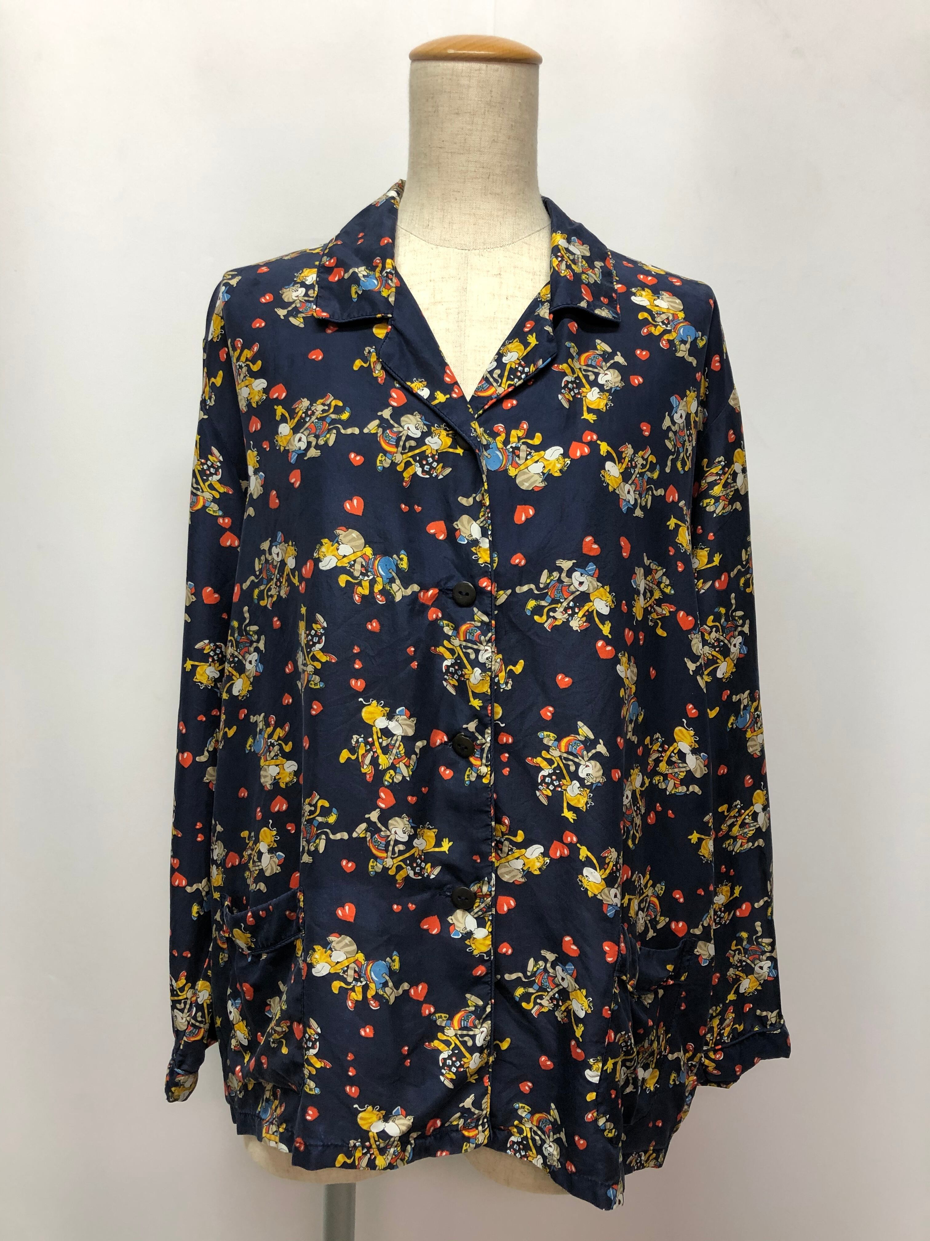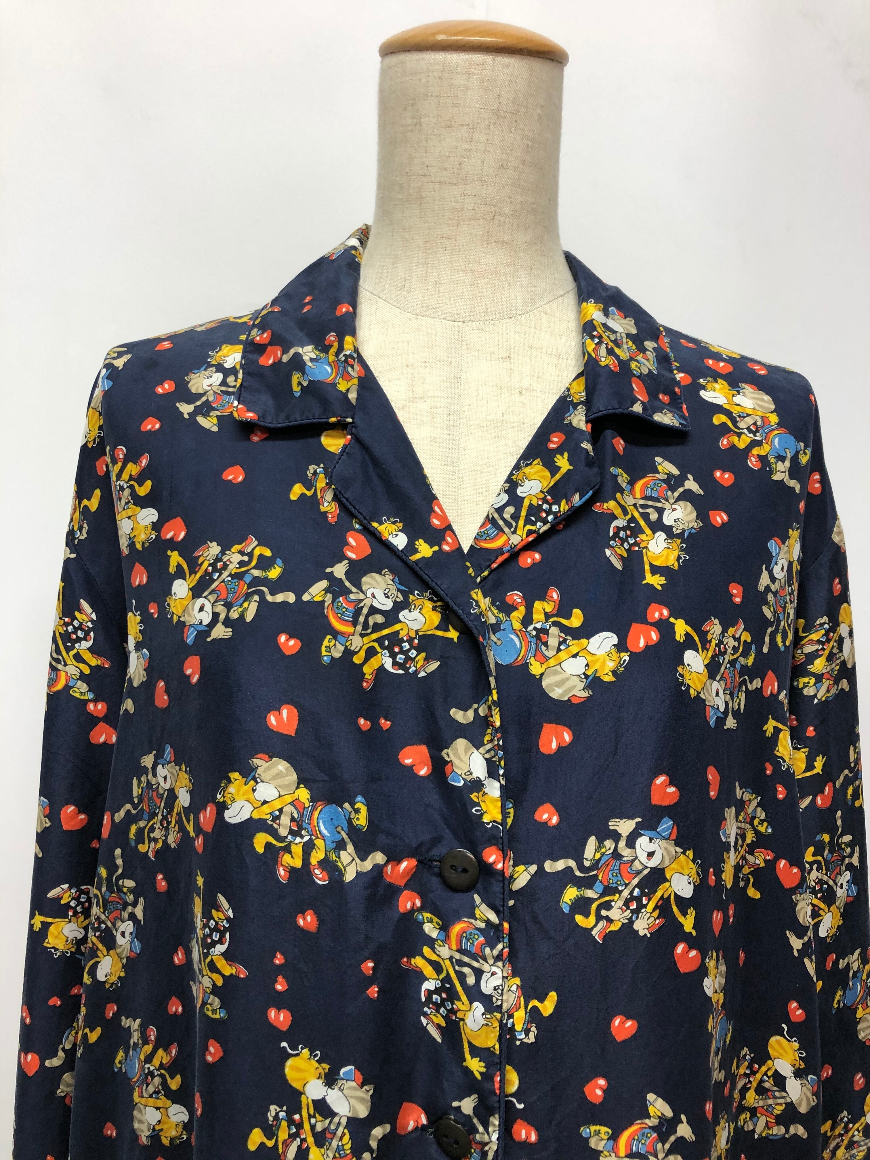 備考:猫のカップルが可愛い、old stock vintageのシルクシャツ