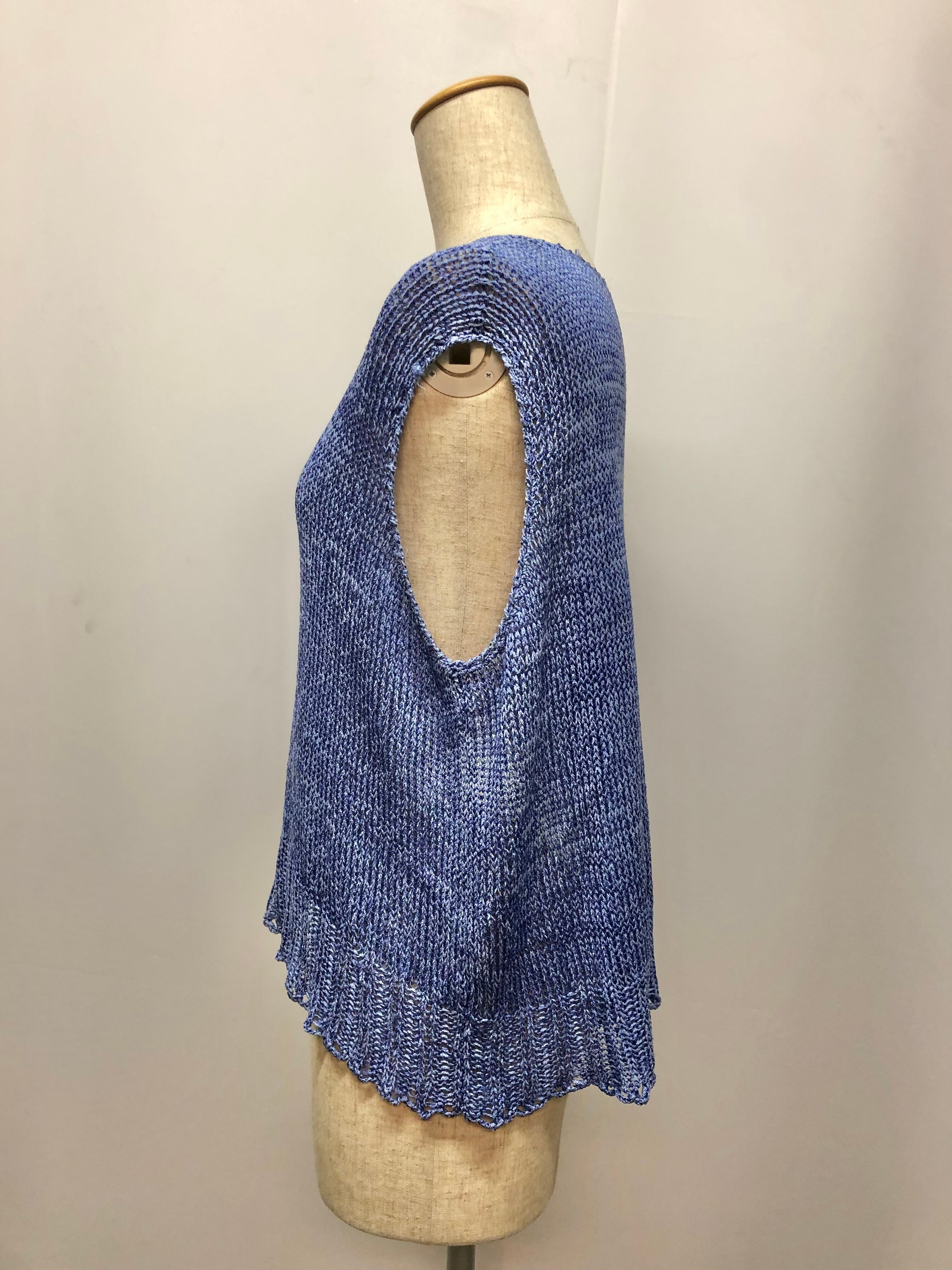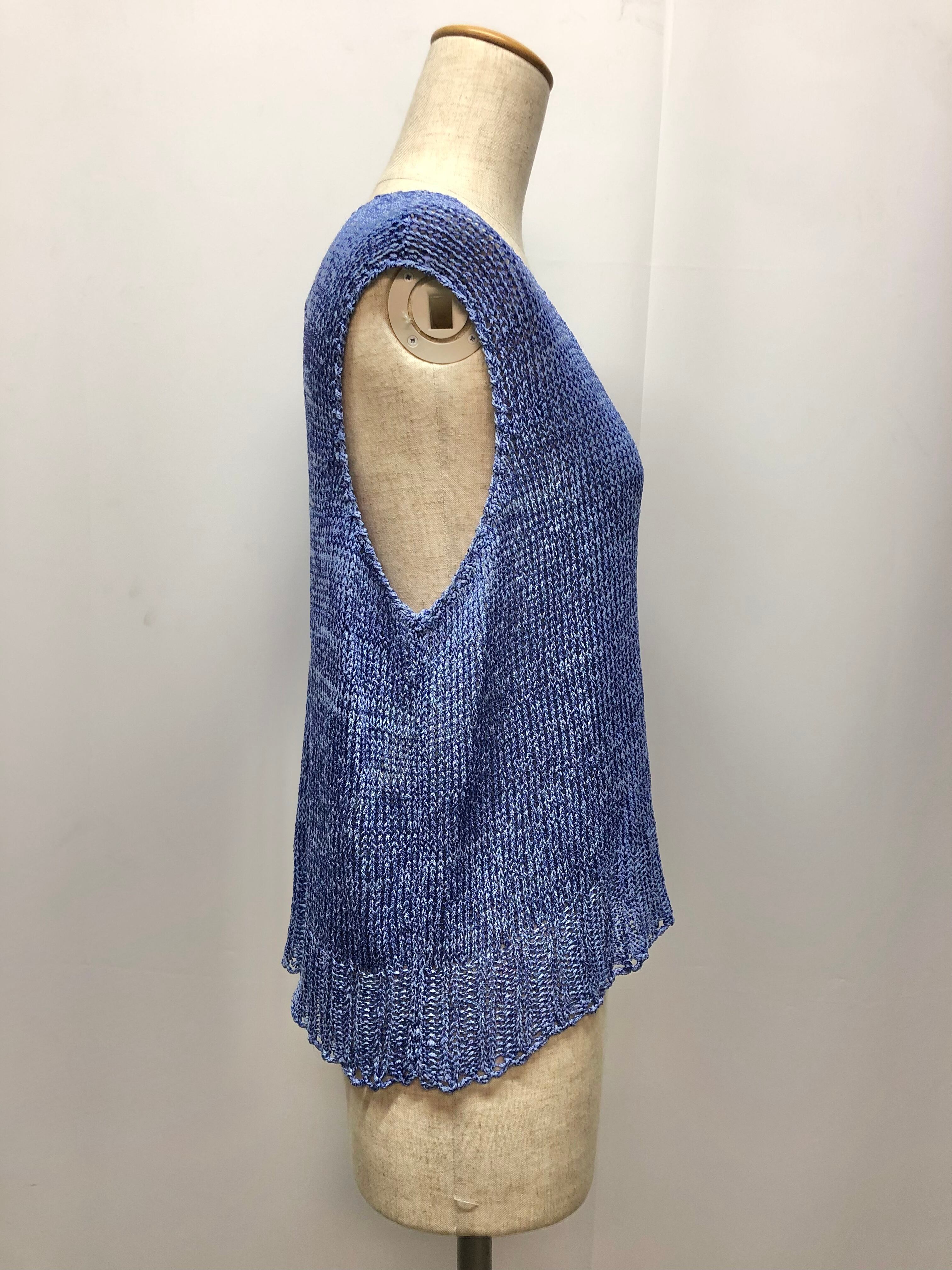 80's blue ribbon crochet knit sleeveless tops/ ヴィンテージ ノースリーブ トップス | 福狗公司 Foo Dogs Ltd. import vintage boutique