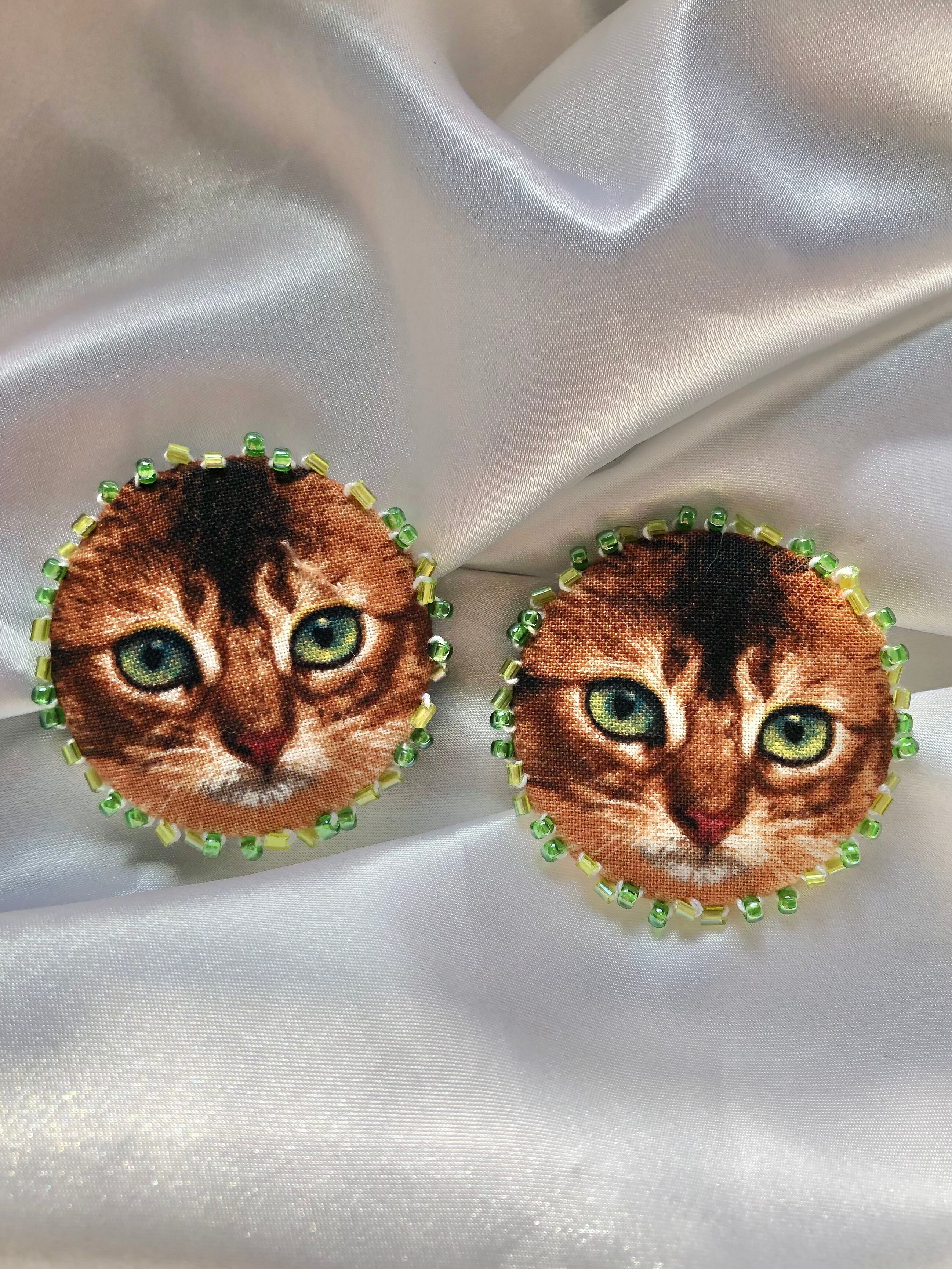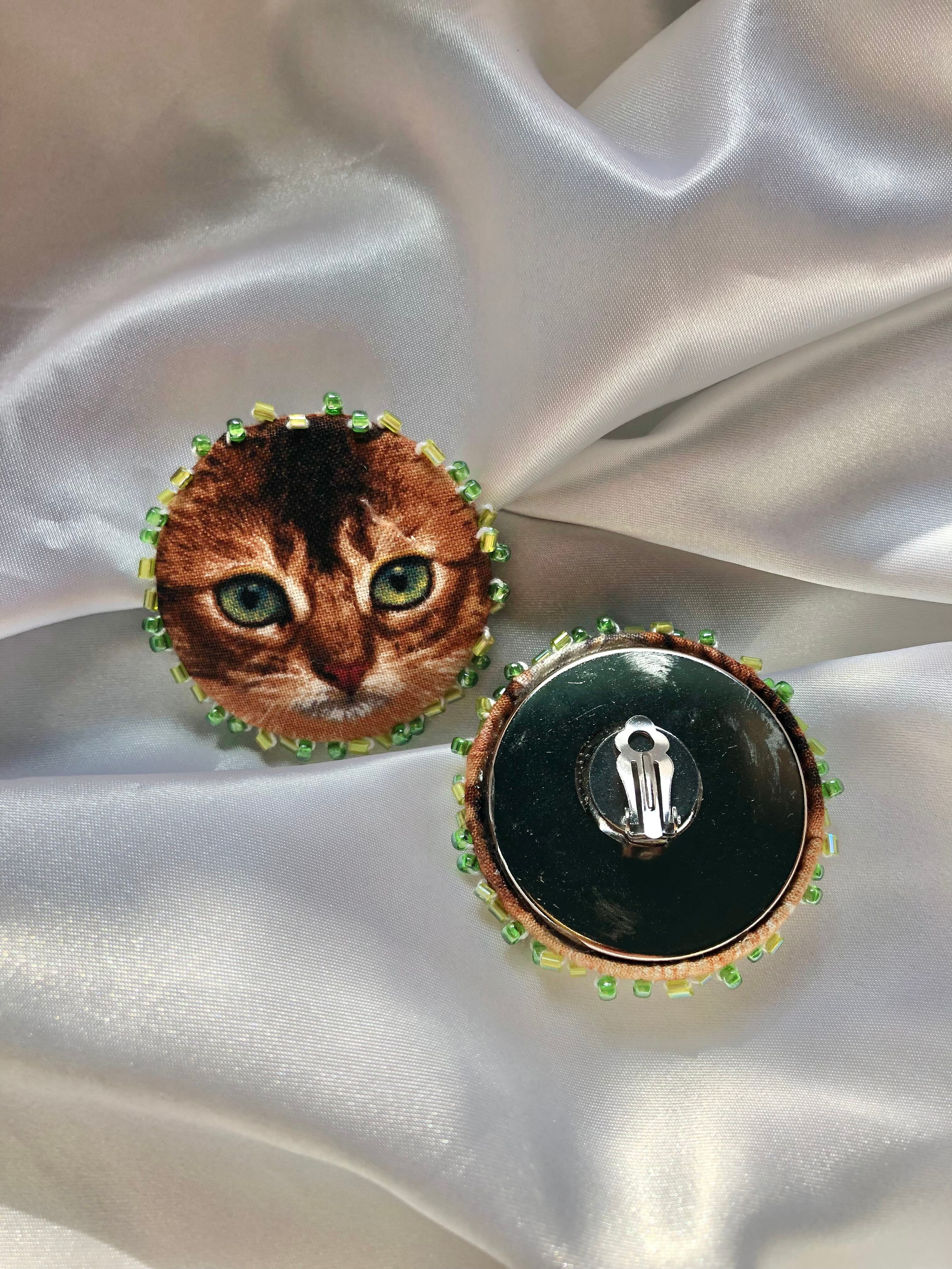 【exclusive】 handmade bead embroidery clip-on-earrings "kitty love" #10 / ヴィンテージ イヤリング 猫 刺繍 | 福狗公司 Foo Dogs Ltd. import vintage boutique