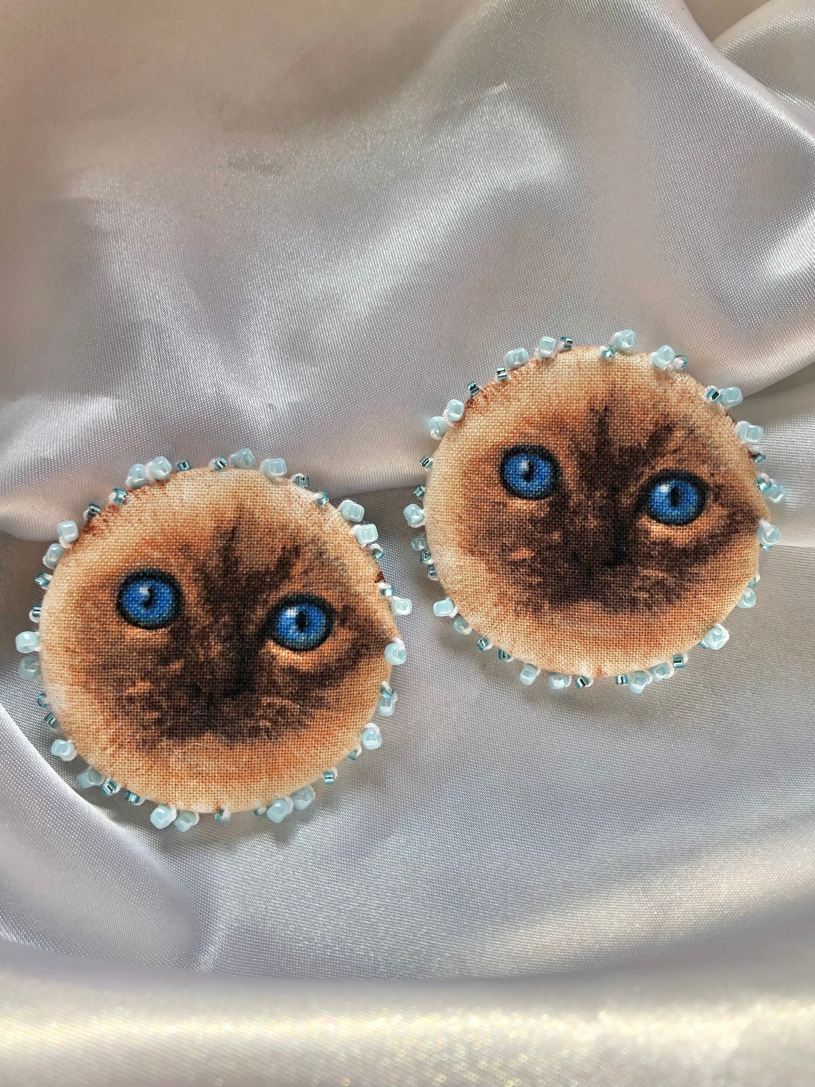 【exclusive】 handmade bead embroidery clip-on-earrings "kitty love" #5 / ヴィンテージ イヤリング 猫 刺繍 | 福狗公司 Foo Dogs Ltd. import vintage boutique