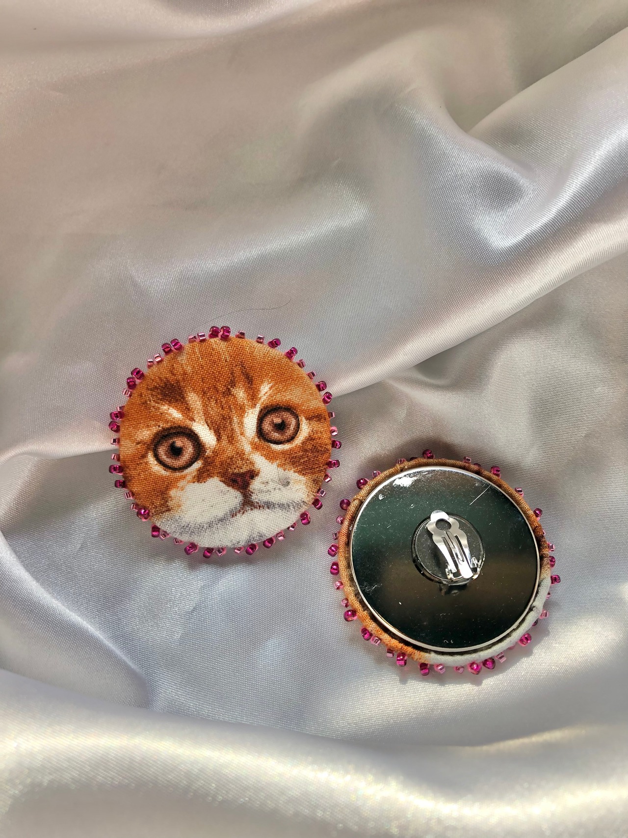 【exclusive】 handmade bead embroidery clip-on-earrings "kitty love" #4 / ヴィンテージ イヤリング 猫 刺繍 | 福狗公司 Foo Dogs Ltd. import vintage boutique