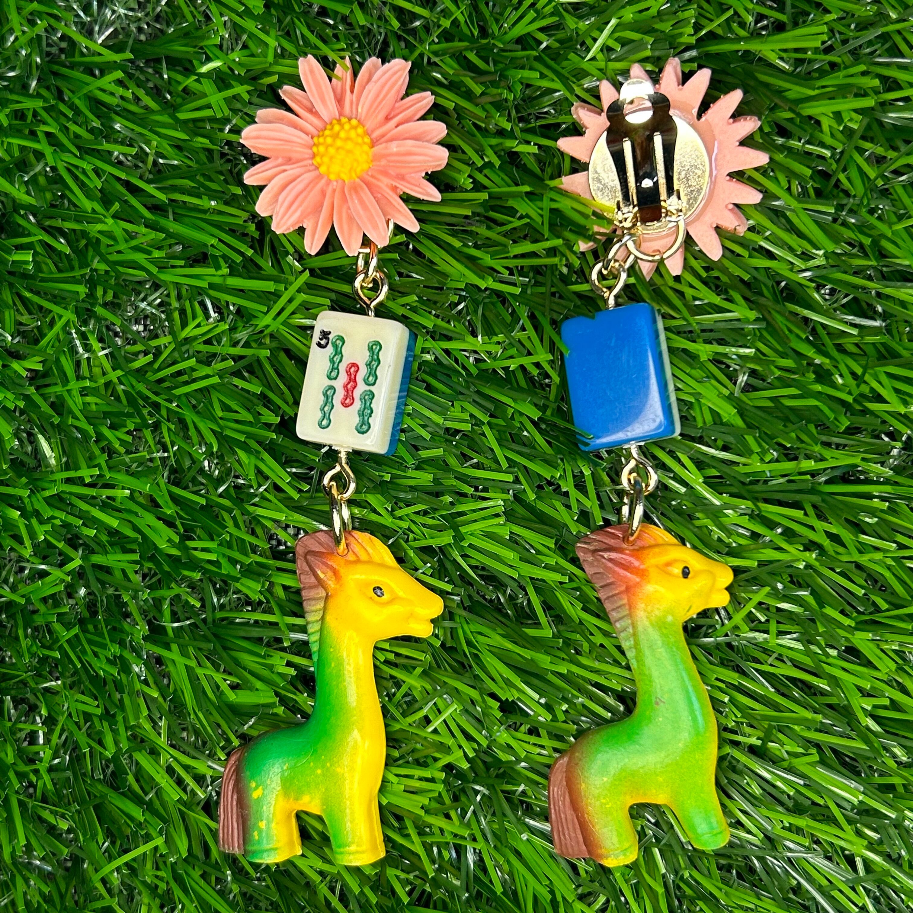 【exclusive】made in hong kong old stock vintage marjong tile rework earrings "pony" / ヴィンテージ イヤリング 香港 | 福狗公司 Foo Dogs Ltd. import vintage boutique
